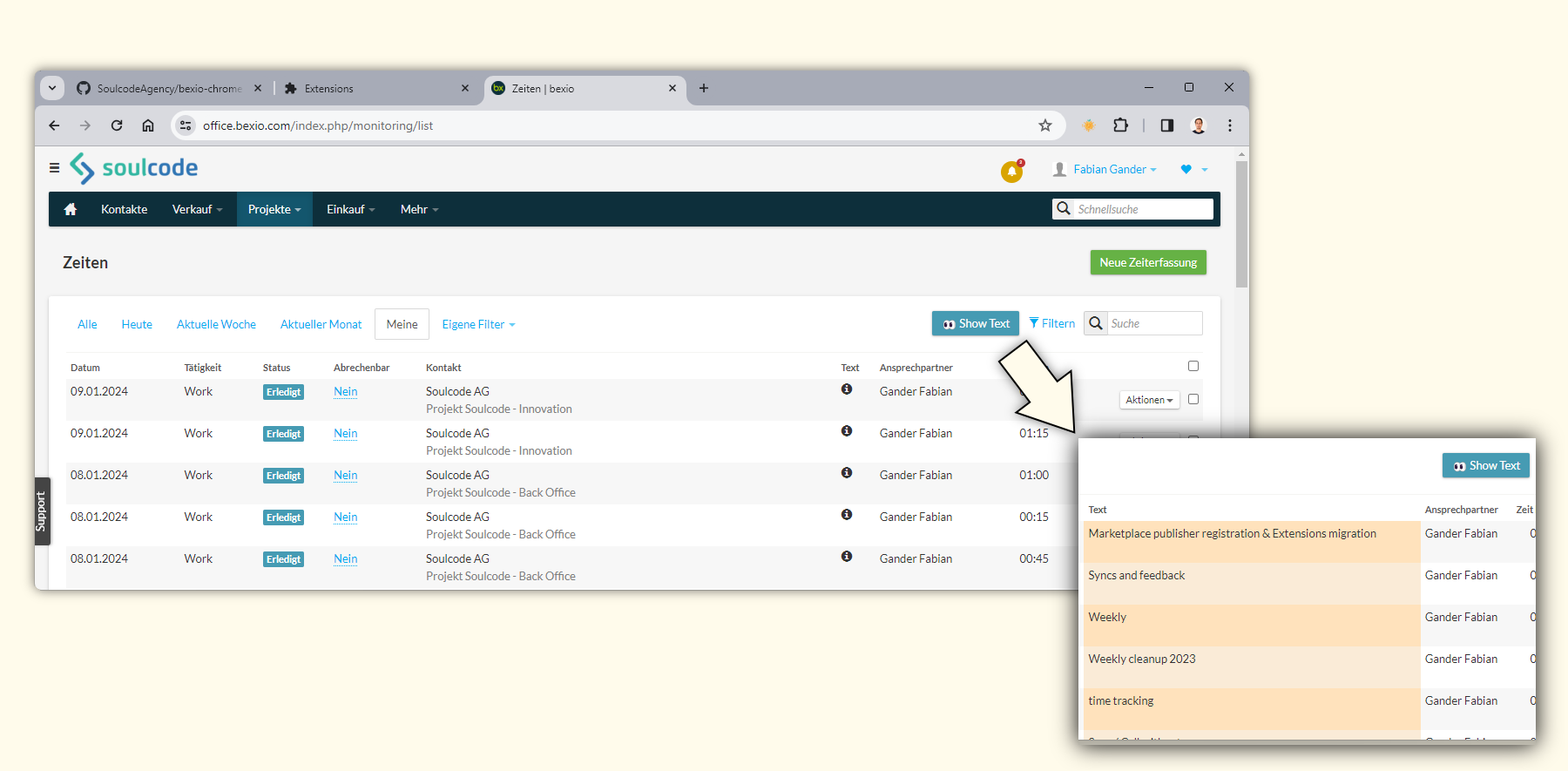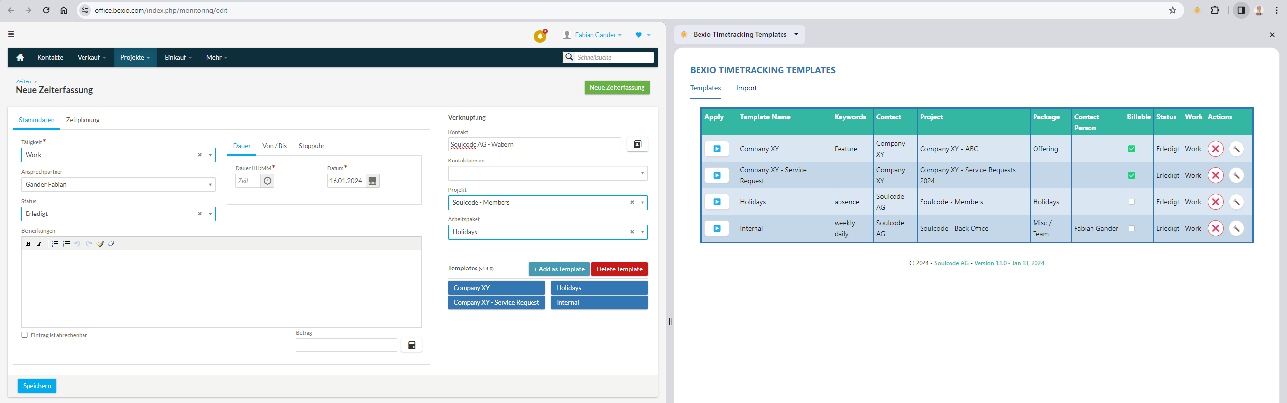 Efficiency in time tracking is crucial, and our "bexio Time Tracking Templates"-Chrome Extension strives to simplify and enhance this aspect of your workflow. Try it out today and streamline your time tracking experience within bexio.